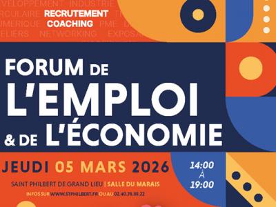 Pour la 11ème année, la Ville de Saint Philbert de Grand Lieu organise son Forum de l’Emploi et de l’Economie qui se déroulera cette année le jeudi 05 mars, salle du Marais (allée des Chevrets), de 14h00 à 19h00.
